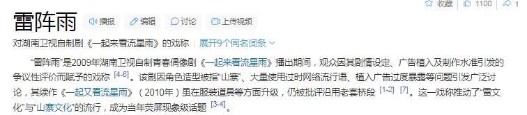 但雷归雷,它当时的播出效果是非常好的,雷成了现象级爆款,至今还有属于自己的百度百科词条。